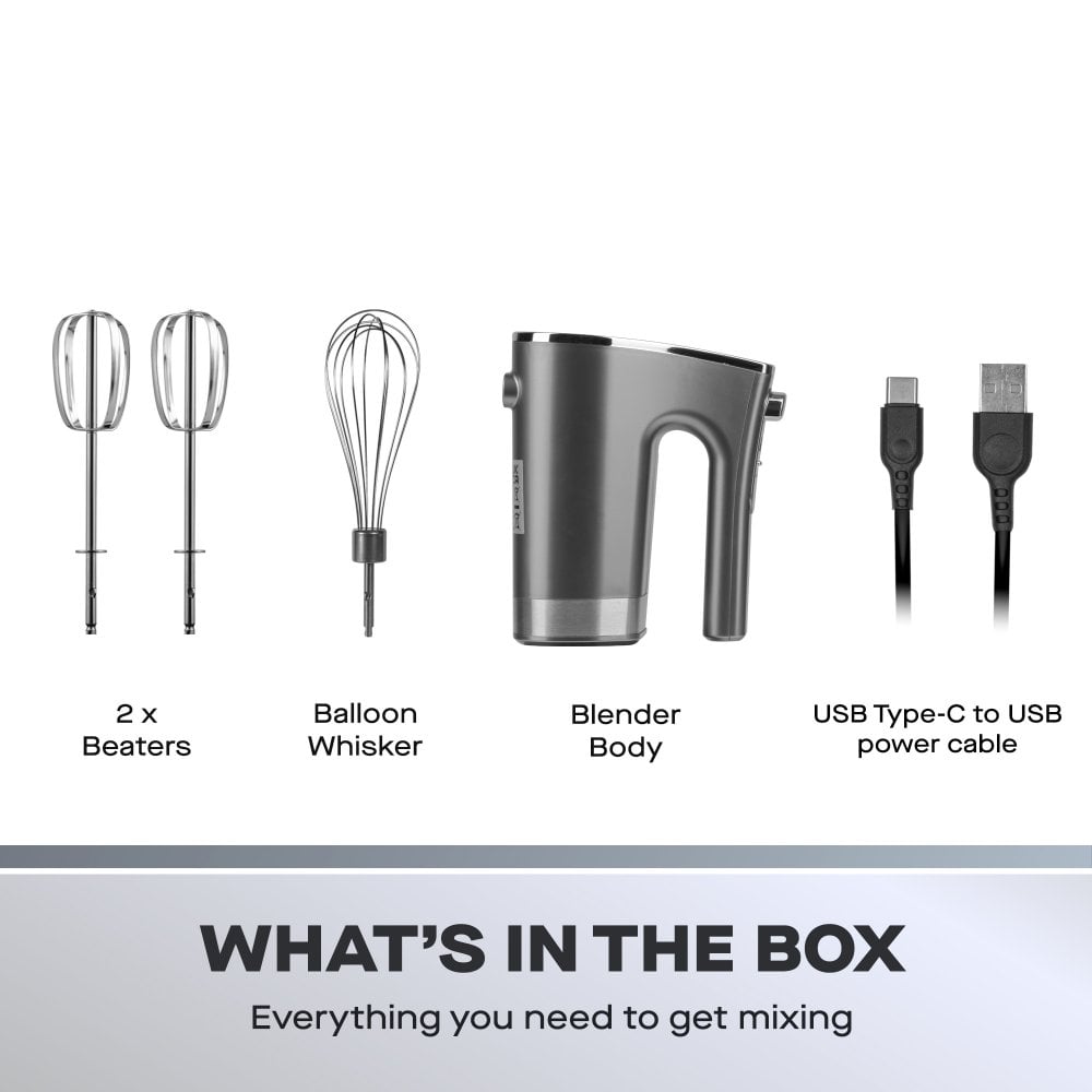 With its robust 200W motor, the Cordless Pro Handheld Mixer takes on everything from delicate cake batters to thick cookie dough with ease. Say goodbye to lumpy mixes and uneven textures - this mixer ensures consistent, smooth results every time.