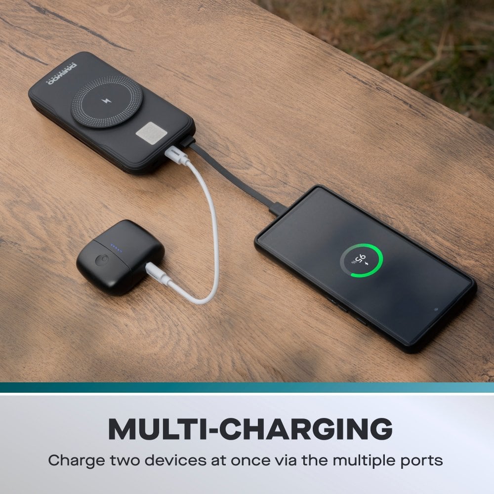 Despite its powerful 10,000mAh capacity, this power bank is designed to be super compact with a soft-touch finish, making it easy to carry in your pocket or handbag. The LED power level display keeps you informed on battery life, while the built-in smart IC chip provides protection against overcharging, overheating, and short circuits, ensuring safe and reliable charging.