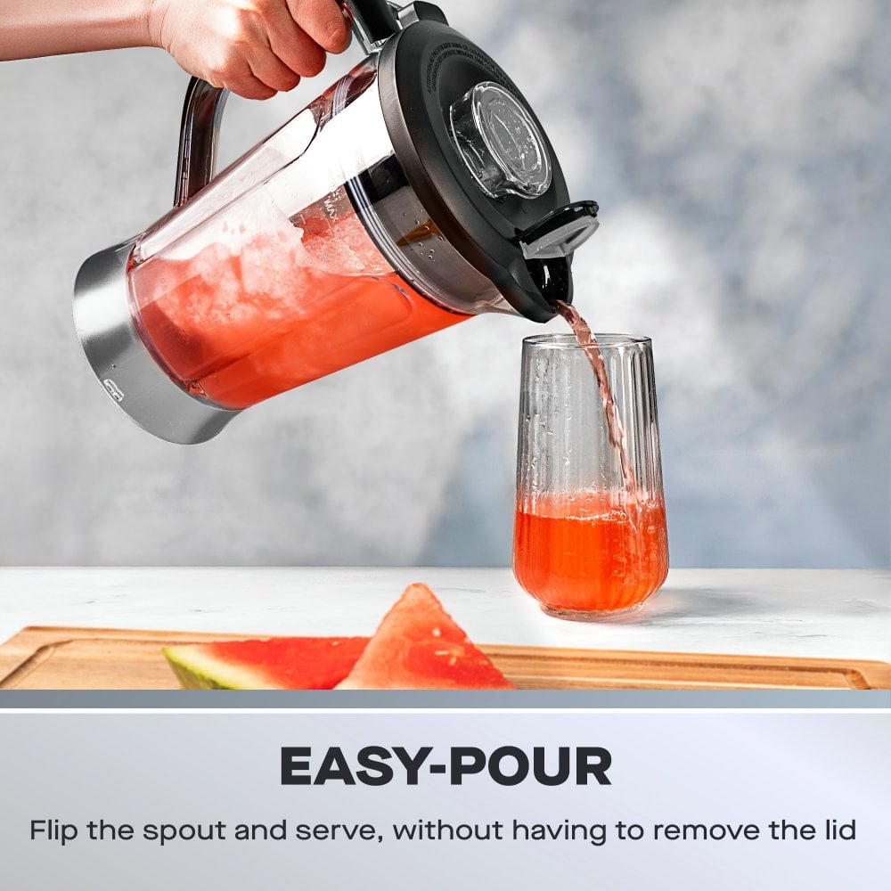 The 1.85L BPA-free jug is big enough for family servings or batch prep, and the easy-pour spout means you don’t have to remove the lid to serve. Just flip the spout and pour - no spills, no mess. The jug is quick to rinse clean, and the sturdy base stays put on your worktop.